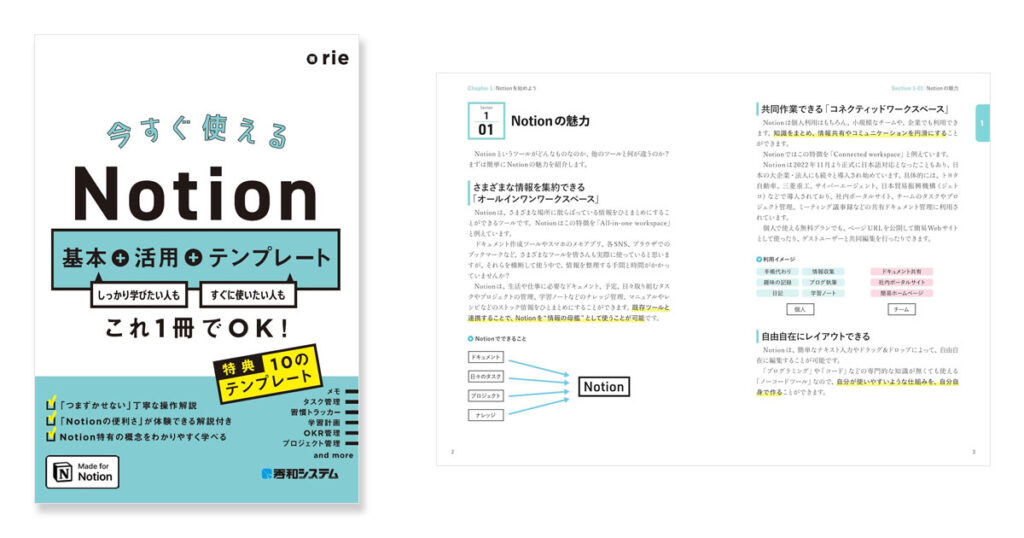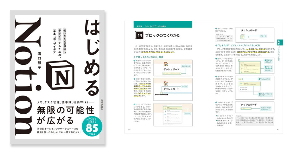 「Notionって何ができるの?」「どれだけ便利なの?」が直感的にわかり、機能を体験しながら学べる一冊です。
