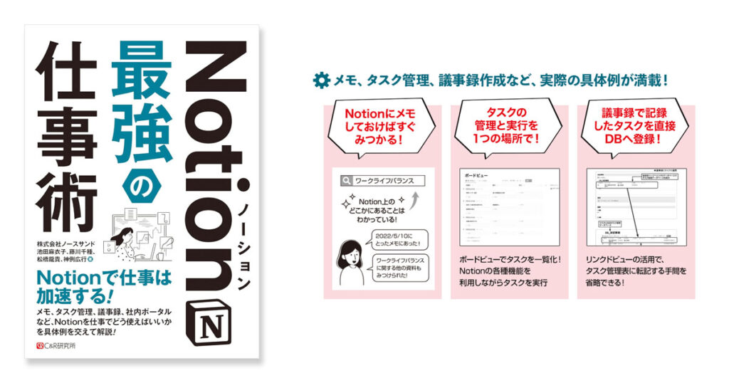 タスク共有・議事録・ドキュメント整理など、複数人での活用にフォーカスした書籍は、スタートアップや部署内のナレッジ共有に悩んでいる人には必読の内容です。